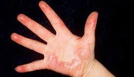sign of a burn, either minor (1st degree) or severe (3rd degree). Helps to remove the shock from the person and