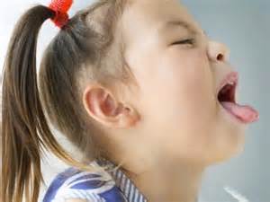 tickling in the throat, as if from down. Retching and vomiting and pain in